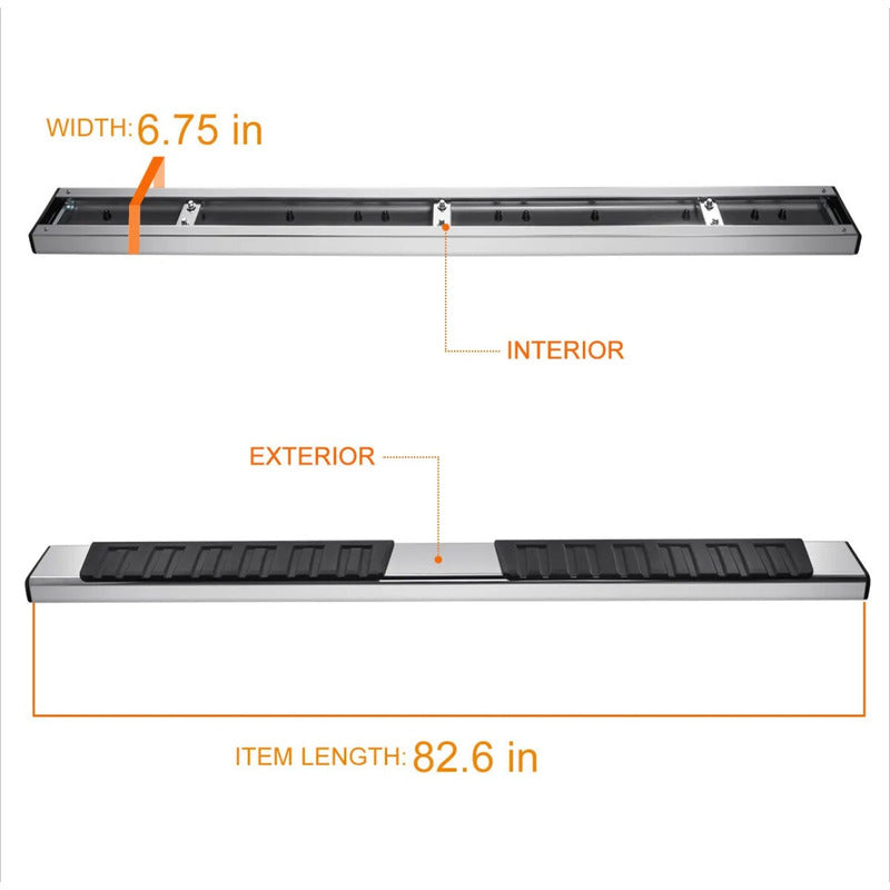CHARACTERISTICS: {Material structure} Made of stable, rust-proof aluminum {Slip Resistant} High quality anti-slip pads {Easy Installation} No drilling required, direct bolt on to the original installation location {Load Bearing} 500 lbs max on each side Nerf bar {Accessories} Adaptive mounting brackets included WHAT'S IN THE PACKAGE: 2 extruded aluminum stirrups. Mounting brackets Hardware as shown in the image above Notes: Compatible with: Chevy Silverado 1500 Crew Cab 2007 2008 2009 2010 2011 2012 2013 2014 2015 2016 2017 2018 2007-2019 Chevy Silverado 2500HD 3500HD Crew Cab GMC Sierra 1500 Crew Cab 2007-2018 GMC Sierra 2500HD 3500HD Crew Cab 2007-2019 Not compatible with diesel models equipped with DEF tank. Once your purchase is complete, if you require an invoice, please confirm your purchase as soon as possible via the purchase message (we only invoice within the corresponding month). *IT IS RECOMMENDED TO CONFIRM STOCK BEFORE PURCHASING THE ITEM, SINCE THEY ARE ITEMS UNDER ORDER AND THE STOCK CHANGES CONSTANTLY *PACKAGES TAKE WITHIN 7-12 DAYS TO BE SHIPPED TO THEIR DESTINATION **THIS ITEM DOES NOT HAVE FREE SHIPPING, THE SHIPPING COST DEPENDS ON THE DESTINATION TO WHERE IT WILL BE SHIPPED. IT VARIES FROM $400 TO $700 #Betuning #Expertsinwhatwedo VILLARREAL SA DE CV AUTO PARTS IMPORTER TMX AUTO PARTS