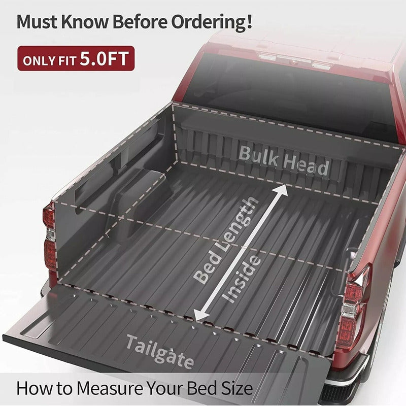 Item Description: 1.Color: Black 2.Type: Tonneau Cover 3.Fit Type: Performance/Custom 4.Material: Marine Grade Vinyl 5. Warranty: 2 Years 6.Placement on Vehicle: Top 7.Feature: Soft Tri-Fold 8.Truck Cargo Bed Tonneau Cover Dimensions Bulkhead Width: 63.77 in (5.3 ft) Tailgate Width: 61.41 in (5.1 ft) This OEDRO TRI-FOLD Truck Bed Tonneau Cover is compatible with 2005-2015 Toyota Tacoma with 5' Short Bed | Floating Side. No drilling. Just need to secure four clamps to install. The rear latches can only be released when the tailgate is open. Lock the tailgate, the top cover will lock. (Minor modifications must be made for vehicles equipped with bedliners over the rail to secure the clamps) Powder-coated aluminum frames with stainless steel clamps make this tri-fold cover stable and durable on your pickup truck. Specifications: 1x OEDRO Tri-Fold Tonneau Cover