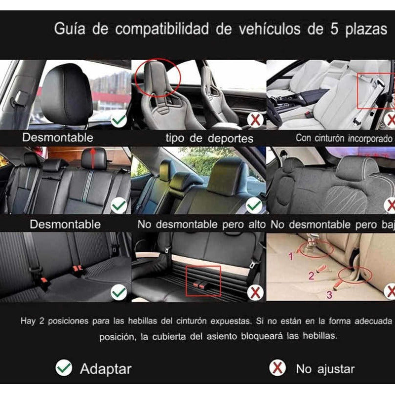 Fundas de asiento de coche de cuero sintético de lujo Conjunto completo trasero delantero Protector de cojín Universal Características: Cuero PU de primera calidad, transpirable y resistente al desgaste. Tacto suave y fácil de lavar con paño húmedo. Compatible con bolsas de aire y hebilla de cinturón de seguridad reservada, sin bloqueo de despliegue, mejore su seguridad al conducir. Diseño envolvente completo, protege mejor el asiento de su automóvil contra la suciedad, los derrames, las manchas, las migas y los pelos de las mascotas. Gran bolsa de contenido para facilitar el almacenamiento, mantener el interior de su automóvil limpio y ordenado. Cubierta del reposabrazos desmontable, de instalación y extracción gratuitas, práctica de usar. Banco trasero ajustable y desmontable, libre para adaptarse a diferentes tamaños de asiento. Ajuste universal para la mayoría de los automóviles, SUV, camiones y furgonetas de 5 asientos. Especificación: Material: cuero PU Ajuste universal 4 Temporada de uso Paquete incluido: 2 fundas de asiento delantero. 2 * Cubierta del banco trasero (el tamaño puede ser ajustable) 1 * cubierta del respaldo trasero 1 funda para reposabrazos (desmontable). Viene con hebillas y ganchos 2 * almohada para el cuello Notas: Permita 1-3 cm debido a la medición manual. Puede haber una ligera desviación de color debido a las diferentes pantallas. Compruebe el tamaño de su asiento de automóvil antes de comprarlo. Guía de compatibilidad Adecuado: 1. Las fundas de los asientos delanteros se adaptan a la mayoría de los automóviles. 2. Compatible con reposabrazos en ambos lados. 3. La longitud ajustable de la cubierta del asiento trasero es de 49 a 56 pulgadas. 4. Bancos traseros divididos 50/50, 40/60, 60/40 o 20/40/20. No apto para: 1. Asientos con un hombro afilado o empinado. 2. Asientos con cinturón de seguridad integrado en el hombro. 3. Asientos deportivos en los que se combinan los respaldos 4. Las hebillas de los cinturones de seguridad están ubicadas cerca del centro. Una vez realizada su compra en caso de requerir FACTURA, confírmenos a la brevedad a través del mensaje de su compra, (únicamente facturamos dentro del MES CORRESPONDIENTE). ¿TIENES ALGUN PROBLEMA CON LA COMPRA? No inicies un reclamo, antes danos la oportunidad de solucionarlo. IMPORTADORA DE AUTOPARTES TMX SA DE CV