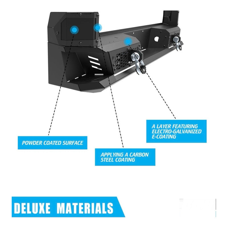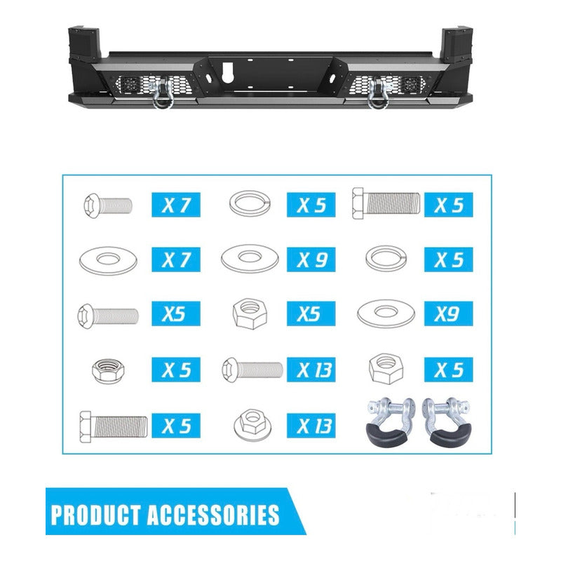 Descripción del producto: Compatible con Toyota Tacoma 2016 Compatible con Toyota Tacoma 2017 Compatible con Toyota Tacoma 2018 Compatible con Toyota Tacoma 2019 Compatible con Toyota Tacoma 2020 Compatible con Toyota Tacoma 2021 Compatible con Toyota Tacoma 2022 Compatible con Toyota Tacoma 2023 Excluidos los modelos sin enganche de remolque Especificaciones: Estado: 100 % original, nuevo Color principal: negro Acabado: acero con recubrimiento en polvo negro Ubicación en el vehículo: trasero Tipo de instalación: atornillado directo sin necesidad de taladrar Perfecto Ajuste Reemplazo de parachoques trasero para Tacoma. Compatible con Toyota Tacoma 2016, 2017, 2018, 2019, 2020, 2021, 2022 y 2023. Diseño único El parachoques trasero para Tacoma utiliza un acabado duradero de pintura en polvo negro texturizado de dos etapas, resistente a la oxidación, con grilletes de anilla en D de alta resistencia, luces LED y soporte de montaje BSM. Marco decorativo desmontable y red decorativa de nido de abeja para pintar con pintura en aerosol. Material de alto rendimiento Nuestro parachoques trasero para Tacoma está fabricado en acero resistente con un acabado de pintura en polvo negro texturizado de dos etapas, con un material resistente y grueso para una protección real, incluso si la pintura en polvo está dañada. Fácil instalación Instalación con instrucciones claras y detalladas. Reemplazo directo de actualización para su parachoques original, reutilizando los puntos de montaje de fábrica. Sin cortes, perforaciones ni modificaciones. Instrucciones de instalación incluidas. Contenido 1 parachoques trasero de acero negro Tacoma (con accesorios). El paquete incluye: 1 parachoques trasero 2 luces LED 2 anillas en D de alta intensidad 1 juego de herrajes de montaje. ¿TIENES ALGÚN PROBLEMA CON LA COMPRA? No inicies un reclamo, antes danos la oportunidad de solucionarlo. *SE RECOMIENDA CONFIRMAR EXISTENCIA ANTES DE COMPRAR EL ARTÍCULO, YA QUE SON ARTÍCULOS BAJO PEDIDO Y EL STOCK CAMBIA CONSTANTEMENTE *LOS PAQUETES TARDAN DENTRO DE 7-12 DÍAS EN ENVIARSE A SU DESTINO #Betuning #Expertosenloquehacemos IMPORTADORA DE AUTOPARTES TMX SA DE CV.