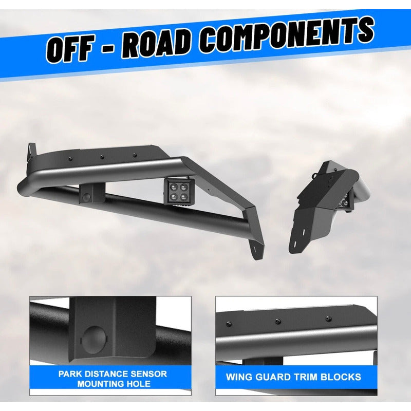 Compatibilidad: Para camioneta Ram 1500 2013-2018 (excepto Rebel) Para Ram 1500 Classic 2019-2024 (excepto Warlock) Características: -----100 % nuevo en caja. Producto sin usar, sin abrir, sin daños y en su embalaje original. -----Instalación directa con el equipo original o reemplazo de la unidad original. ----- Construcción robusta, acabado con pintura en polvo. Funciones prácticas: Parachoques delantero ----------- 1. Se instala sin necesidad de cortar. 2. Fabricado con placas de acero de 3,5 mm de alta resistencia y soportes de acero de 5 mm, acero al carbono con acabado texturizado negro con pintura en polvo para una protección extrema y resistencia a la corrosión. 3. Se puede instalar una barra de luces LED de 71 cm. Dimensiones: 115,5 x 20,3 x 22,8 cm Aletas laterales del parachoques delantero 1. Incluye 2 luces LED. 2. Recubrimiento en polvo negro microtexturizado. 3. Conserva los sensores de estacionamiento de fábrica. Dimensiones: 58,7 x 69,5 x 38,1 cm Barra parachoques delantero 1. Se puede instalar una barra de luces LED o una luz de cápsula. 2. Recubrimiento en polvo negro microtexturizado. Dimensiones: 15,9 x 15,9 x 87,5 cm. ¿TIENES ALGÚN PROBLEMA CON LA COMPRA? No inicies un reclamo, antes danos la oportunidad de solucionarlo. *SE RECOMIENDA CONFIRMAR EXISTENCIA ANTES DE COMPRAR EL ARTÍCULO, YA QUE SON ARTÍCULOS BAJO PEDIDO Y EL STOCK CAMBIA CONSTANTEMENTE *LOS PAQUETES TARDAN DENTRO DE 7-12 DÍAS EN ENVIARSE A SU DESTINO #Betuning #Expertosenloquehacemos IMPORTADORA DE AUTOPARTES TMX SA DE CV.