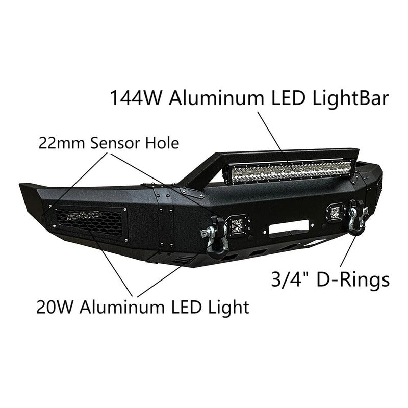 Compatible con: Ford F250/F350/F450 Super Duty 2016-2022Volumen del parachoques delantero: 78.3x24.8x18.9 (pulgadas) Peso: 134.5 lbsVolumen del parachoques trasero: 75.9x14.9x11.7 (pulgadas) Peso: 81.6 lbsMaterial: acero duro de bajo carbono de 5/32" de grosor y tubo de acero de tolerancia de precisión de 2" x 0.120" para un parachoques más duro y duradero, recubrimiento en polvo negro avanzado de tres etapas, corrosión y durabilidad.Luces LED: diseño de luz LED integrada. Hace que el foco se vea genial y proporciona seguridad adicional en los senderos más oscuros.Anillas D: 2*4.75 toneladas de alta resistencia, cabestrante integrado que soporta el cabestrante de 9500 libras.El paquete incluye: (Sin arnés de cableado para las luces LED) Parachoques delantero Parachoques trasero 1X Barra de luz LED de 144W 4X Luces LED cuadradas de 24W 4X Luces LED de tira de 18W 4X Anillas D de 4.75-T 4xArandelas Un conjunto de tornillos Instrucciones de instalación *SE RECOMIENDA CONFIRMAR EXISTENCIA ANTES DE COMPRAR EL ARTÍCULO, YA QUE SON ARTÍCULOS BAJO PEDIDO Y EL STOCK CAMBIA CONSTANTEMENTE *LOS PAQUETES TARDAN DENTRO DE 7-12 DÍAS EN LLEGAR A SU DESTINO Una vez realizada su compra en caso de requerir FACTURA, confírmenos a la brevedad a través del mensaje de su compra, (únicamente facturamos dentro del MES CORRESPONDIENTE). ¿TIENES ALGUN PROBLEMA CON LA COMPRA? No inicies un reclamo, antes danos la oportunidad de solucionarlo. #Betuning #Expertosenloquehacemos IMPORTADORA DE AUTOPARTES VILLARREAL S.A DE C.V. AUTOPARTES TMX