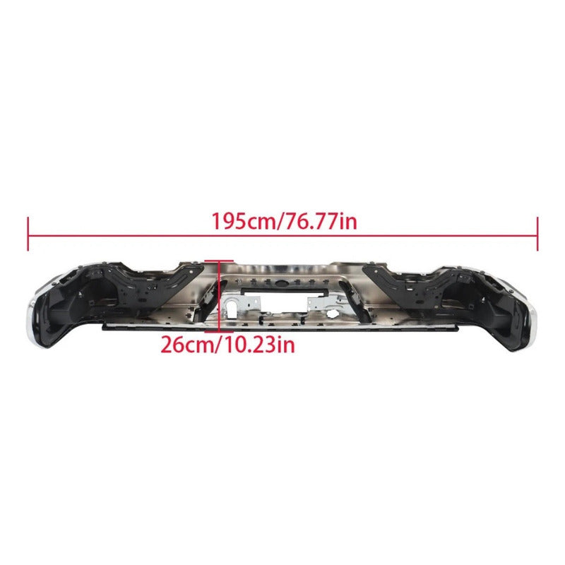 Para Chevy Silverado GMC Sierra 1500 2019-2023, conjunto de parachoques trasero cromado Compatibilidad: Para Chevy Silverado GMC Sierra 2019-2023 Descripción: -Configuración: Barra frontal y pastillas -Cantidad: Se vende por unidad -Reemplaza los números de equipo original: 190-10295C, 23251664, 23251665, 84227858, 84227859, 84227860, 84227861, 84429050, 84434641, 84434642, 84564758, 84564764, 85128850, 85128851 -Recomendado Uso: Reemplazo de equipo original -Montaje: Sin soporte(s) de montaje -Número de pieza de intercambio: GM1103218, 85128851, 85128850, 84564764, 84564758, 84434642, 84434641, 84429050, 84227861, 84227860, 84227859, 84227858, 23251665, 23251664, 190-10295C -Color/acabado: Cromado -Reemplaza el número de referencia: GM1103218 -Orificios para sensor de asistencia de aparcamiento: Sin orificios para sensor de asistencia de aparcamiento -Estado: Nuevo Paquete Incluye: 1 parachoques cromado tipo escalón Con orificios de escape Sin orificios para sensor de asistencia de estacionamiento Sin instrucciones de uso. ¿TIENES ALGÚN PROBLEMA CON LA COMPRA? No inicies un reclamo, antes danos la oportunidad de solucionarlo. *SE RECOMIENDA CONFIRMAR EXISTENCIA ANTES DE COMPRAR EL ARTÍCULO, YA QUE SON ARTÍCULOS BAJO PEDIDO Y EL STOCK CAMBIA CONSTANTEMENTE *LOS PAQUETES TARDAN DENTRO DE 7-12 DÍAS EN ENVIARSE A SU DESTINO #Betuning #Expertosenloquehacemos IMPORTADORA DE AUTOPARTES TMX SA DE CV.
