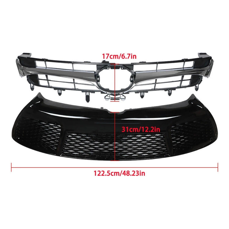 Rejillas de parachoques delanteras superior e inferior (2 unidades) para Toyota Camry SE 2015-2016 2017, color negro Descripción del producto Compatibilidad con el vehículo: Parrilla cromada para parachoques superior e inferior de Toyota Camry SE 2015-2017 Características del producto: 100 % nuevo Se recomienda la instalación profesional. No se requieren modificaciones. Por favor, compruebe el ajuste antes de comprar. Especificaciones: 100 % nuevo en su caja con el embalaje del fabricante, nunca antes instalado. Instalación original atornillada de fábrica; no requiere modificaciones en el vehículo ni reemplazo de la unidad original. No incluye guía ni instrucciones de instalación; se recomienda la instalación profesional. INSTALACIÓN: Este producto requiere la instalación profesional. ¿TIENES ALGÚN PROBLEMA CON LA COMPRA? No inicies un reclamo, antes danos la oportunidad de solucionarlo. *SE RECOMIENDA CONFIRMAR EXISTENCIA ANTES DE COMPRAR EL ARTÍCULO, YA QUE SON ARTÍCULOS BAJO PEDIDO Y EL STOCK CAMBIA CONSTANTEMENTE *LOS PAQUETES TARDAN DENTRO DE 7-12 DÍAS EN ENVIARSE A SU DESTINO #Betuning #Expertosenloquehacemos IMPORTADORA DE AUTOPARTES TMX SA DE CV.