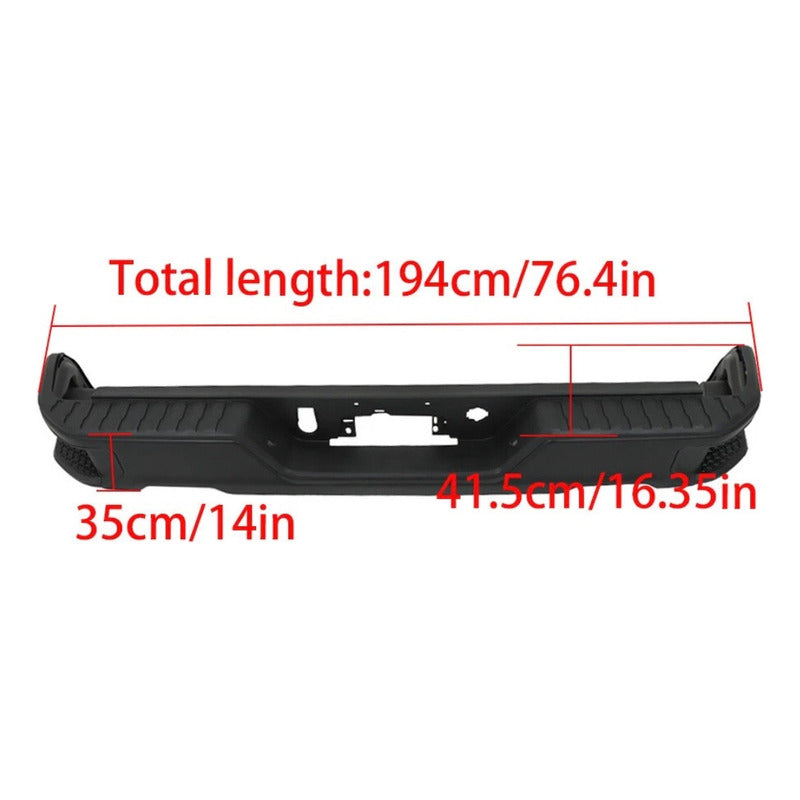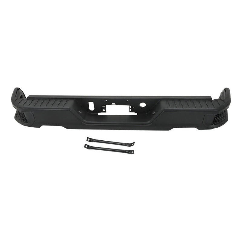 Para Silverado 1500/Sierra 1500 2019-2023, conjunto de parachoques trasero imprimado con doble escape Compatibilidad: Para Chevy Silverado 1500 2019-2023 Para GMC Sierra 1500 2019-2023 Para modelos de la serie 1500 SOLO CON escape doble Para usar SIN asistente de estacionamiento ni soportes de punto ciego Especificaciones: Tipo: Conjunto de parachoques Acabado: Imprimado Color: Negro Material: Acero Ubicación en el vehículo: Trasero Número de pieza de intercambio: GM1103210 Pieza de equipo original Número: 190-10295D, 23251664, 23251665, 84227858, 84227859, 84227860, 84227861, 84434641, 84434642, 84564764, 84574364, 85128850, 85128851 Características: 100 % nuevo. Fácil de instalar. Diseñado como reemplazo directo del conjunto de parachoques. Apariencia premium, protección duradera. Fabricado en acero para una resistencia y estilo duraderos. Listo para restaurar el estilo y la protección de la parte trasera de su vehículo. El paquete incluye: 1 conjunto de parachoques trasero tipo escalón Sin instrucciones de uso. ¿TIENES ALGÚN PROBLEMA CON LA COMPRA? No inicies un reclamo, antes danos la oportunidad de solucionarlo. *SE RECOMIENDA CONFIRMAR EXISTENCIA ANTES DE COMPRAR EL ARTÍCULO, YA QUE SON ARTÍCULOS BAJO PEDIDO Y EL STOCK CAMBIA CONSTANTEMENTE *LOS PAQUETES TARDAN DENTRO DE 7-12 DÍAS EN ENVIARSE A SU DESTINO #Betuning #Expertosenloquehacemos IMPORTADORA DE AUTOPARTES TMX SA DE CV.