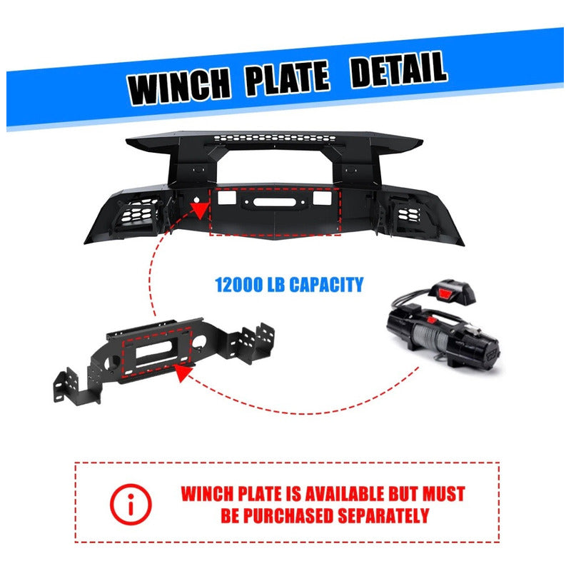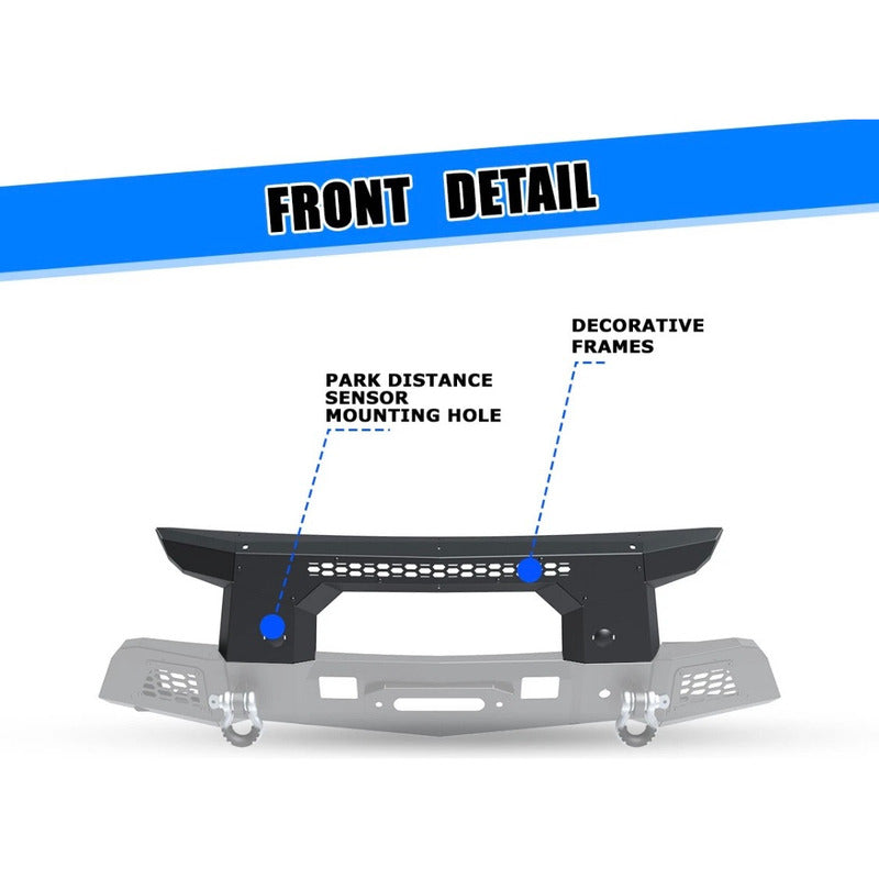 Compatibilidad: Para Chevrolet Silverado 1500 (modelos 2019, 2020 y 2021) (no compatible con el modelo LD 2019). Acerca de este artículo: Información de compatibilidad Nuestro parachoques delantero es compatible con Chevrolet Silverado 1500 (modelos 2019, 2020 y 2021) (no compatible con el modelo LD 2019). Construcción robusta El parachoques delantero está fabricado en acero Q235A, que ofrece una excelente resistencia y durabilidad, brindando una amplia protección a su vehículo. Diseño único Los marcos decorativos desmontables se pueden pintar y modificar según sus necesidades, y también se pueden desmontar para instalar faros antiniebla o luces de posición originales. (NOTA: Luces no incluidas) Adaptación perfecta Orificio guía para cable de cabrestante prereservado, 2 orificios de accionamiento para interruptor de embrague de cabrestante y orificio para el arnés de cableado del calentador auxiliar, lo que le permite resolver sus necesidades de instalación sin necesidad de realizar orificios adicionales. Incluye Parachoques delantero x1, anilla en D, componentes relacionados y herramientas de instalación. 1 año de garantía, servicio al cliente 24/7. Especificaciones: Color: Negro Material: Construcción de acero Q235A Reemplazo directo del parachoques original. Coincide con los orificios originales del vehículo, sin necesidad de cortar ni taladrar. Fabricado en acero Q235A (acero A3). Las fijaciones de anilla en D de alta resistencia están soldadas directamente a la carrocería principal a máquina y son resistentes, incluyendo una anilla en D con capacidad de carga de 4,75 toneladas. Orificio para el arnés de cableado del calentador auxiliar. Orificio reservado para la guía del cable del cabrestante y orificio de accionamiento del interruptor del embrague del cabrestante. Hay un marco decorativo a cada lado, que corresponde al soporte de montaje para los faros antiniebla de serie o las luces de cápsula de 3" o 4", respectivamente. (Nota: Las luces no están incluidas en este kit). Paquete profesional, protección total. ¿TIENES ALGÚN PROBLEMA CON LA COMPRA? No inicies un reclamo, antes danos la oportunidad de solucionarlo. *SE RECOMIENDA CONFIRMAR EXISTENCIA ANTES DE COMPRAR EL ARTÍCULO, YA QUE SON ARTÍCULOS BAJO PEDIDO Y EL STOCK CAMBIA CONSTANTEMENTE *LOS PAQUETES TARDAN DENTRO DE 7-12 DÍAS EN ENVIARSE A SU DESTINO #Betuning #Expertosenloquehacemos IMPORTADORA DE AUTOPARTES TMX SA DE CV.