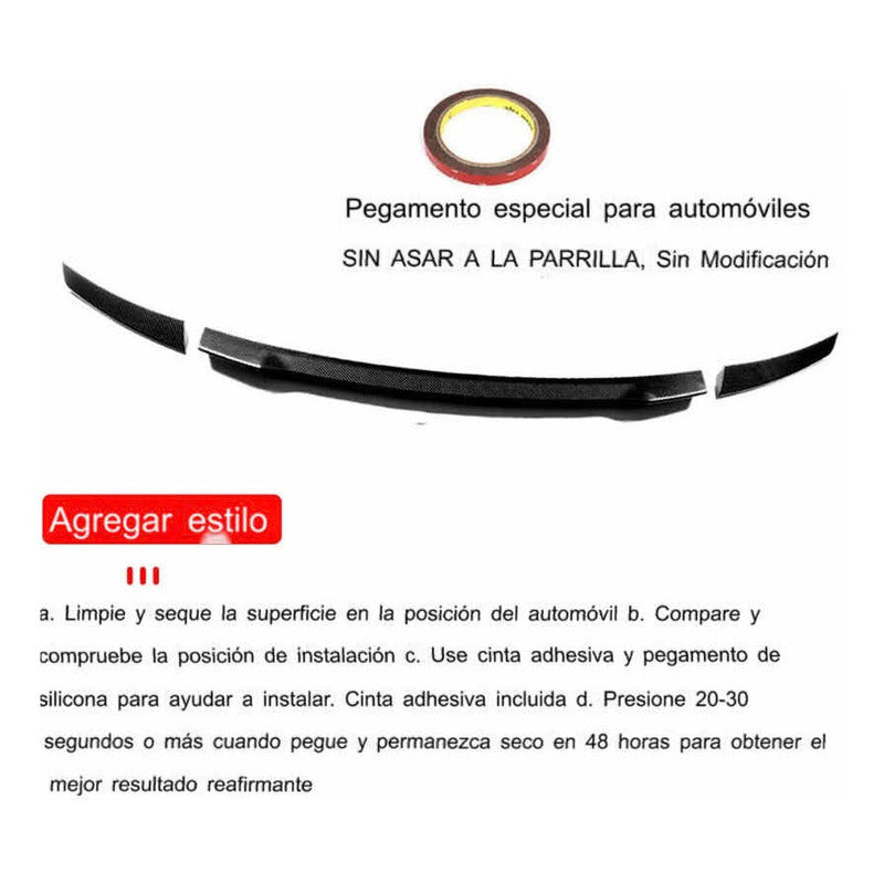 1. Apto para Audi R8 V8 V10 2008 2009 2010 2011 2012 2013 2014 2015 2. No requiere perforación ni modificación, fácil instalación con cinta adhesiva, el alerón se puede quitar más tarde sin dañar la pintura. 3. Material de fibra de carbono de tejido de sarga 3*3 con revestimiento transparente de alta calidad con protección UV para evitar que se amarillee y mantenga su acabado brillante. 4. El alerón trasero del maletero del automóvil está diseñado según las especificaciones de fábrica, probado en un automóvil real, ajuste 100% perfecto 5. Nuevo proceso de fabricación, moldeado al vacío, más liviano y duradero que otras piezas de carbono ordinarias 6. Mejore el impacto visual, cree una nueva apariencia icónica de carreras y diferencie su automóvil de modelos similares en la calle 7. Mantener la estabilidad del vehículo a altas velocidades, reduciendo la resistencia al viento, ahorrando combustible y manteniendo la seguridad. Especificación: 1.Color: negro brillante 2. Material: fibra de carbono 3. G. W: 2,5 KG 4. Paquete: caja de espuma con burbujas envueltas en el interior 5. Superficie: tejido de sarga 3*3 pulido alto Contenido del paquete: 1 pieza de alerón trasero de fibra de carbono Instalación: a. Limpie y seque la superficie en la posición del automóvil. b. Compare y compruebe la posición de instalación C. Use cinta adhesiva para ayudar a instalar d. Presione suavemente y. Fijo y retenido Si no está seguro del artículo, contáctenos antes de comprar para evitar devoluciones ¡gracias! #Betuning #Expertosenloquehacemos