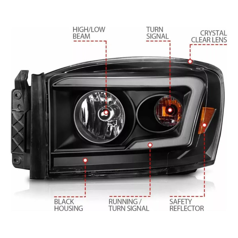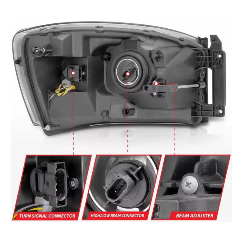Faros Led Fondo Negro Ram 1500 2500 2006 2007 2008 Ambos Lados