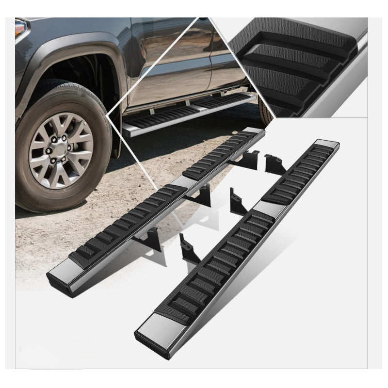 resistente al óxido, acero inoxidable Tapas de plástico ABS Acabado pulido Capacidad de peso 450Lb Pernos de instalación fáciles y taladrar directamente a los puntos de montaje de fábrica (la mayoría de los modelos) Soportes de montaje específicos del vehículo incluidos Compatible con: Toyota Tacoma Access Extended Cab 2005-2023 (Cabina y media) 100% nuevo La instalación profesional es muy recomendable Las instrucciones de instalación no están incluidas 2 estribos de acero inoxidable Soportes de montaje Hardware como se muestra en la imagen de arriba *SE RECOMIENDA CONFIRMAR EXISTENCIA ANTES DE COMPRAR EL ARTÍCULO, YA QUE SON ARTÍCULOS BAJO PEDIDO Y EL STOCK CAMBIA CONSTANTEMENTE *LOS PAQUETES TARDAN DENTRO DE 7-12 DÍAS EN LLEGAR A SU DESTINO AM#Betuning #Expertosenloquehacemos IMPORTADORA DE AUTOPARTES VILLARREAL S.A DE C.V. AUTOPARTES TMX