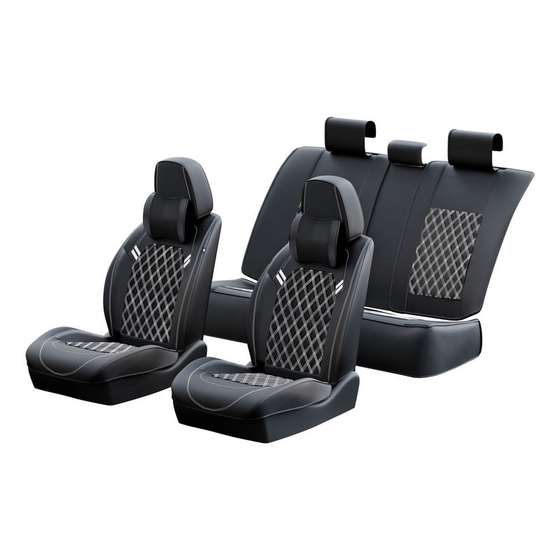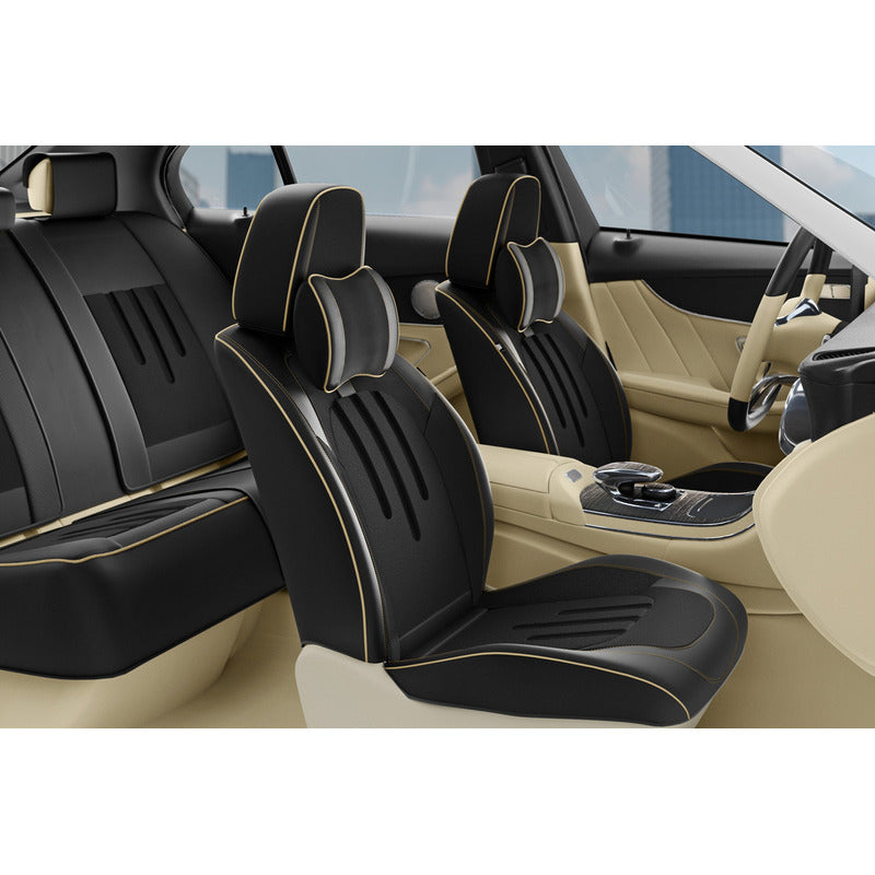 Fundas de asiento de coche de cuero de lujo Protector de cojín de conjunto completo delantero trasero Universal. Características: Piel sintética de primera calidad, transpirable y resistente al desgaste. Tacto suave y fácil de lavar con paño húmedo. Compatible con airbag y hebilla del cinturón de seguridad reservada, sin bloqueo de despliegue, mejora su seguridad de conducción. Diseño envolvente completo, protege mejor el asiento del automóvil contra la suciedad, derrames, manchas, migas y pelos de mascotas. Bolsa de contenido grande para permitir la comodidad de almacenamiento, mantener el interior de su automóvil limpio y ordenado. Funda de reposabrazos desmontable, de instalación y extracción gratuita, práctica de usar. Banco trasero ajustable y desmontable, libre para adaptarse a diferentes tamaños de asiento. Universal se adapta a la mayoría de los coches, SUV, camiones y furgonetas de 5 plazas. Especificación: Material: cuero PU Ajuste: ajuste universal Uso en 4 estaciones Paquete incluido: 2 * Funda de asiento delantero 2 * Cubierta del banco trasero (el tamaño puede ser ajustable) 1 * Funda de respaldo trasero 1 * Funda de reposabrazos (desmontable) Viene con hebillas y ganchos 2 * Almohada para el cuello (si necesita una almohada, elija "Funda de 5 asientos con almohadas" en el menú desplegable "Tipo") 2 * almohada lumbar Notas: Por favor permita 1-3 cm debido a la medición manual. Puede haber una ligera desviación de color debido a diferentes pantallas. Verifique el tamaño de su asiento para el automóvil antes de comprarlo. Guía de compatibilidad Adecuado: 1. Las fundas de los asientos delanteros se adaptan a la mayoría de los automóviles. 2. Compatible con reposabrazos en ambos lados. 3. La longitud ajustable de la cubierta del asiento trasero es de 49 a 56 pulgadas. 4. Bancos traseros divididos 50/50, 40/60, 60/40 o 20/40/20. No apto para: 1. Asientos con un hombro afilado o empinado. 2. Asientos con cinturón de seguridad integrado en el hombro. 3. Asientos deportivos en los que se combinan los respaldos 4. Las hebillas de los cinturones de seguridad están ubicadas cerca del centro. ANTES DE COMPRAR VERIFIQUE EL COLOR. Una vez realizada su compra en caso de requerir FACTURA, confirmemos a la brevedad a traves del mensaje de su compra, (únicamente facturamos dentro del MES CORRESPONDIENTE). ¿TIENES ALGUN PROBLEMA CON LA COMPRA? No inicies un reclamo, antes danos la oportunidad de solucionarlo.