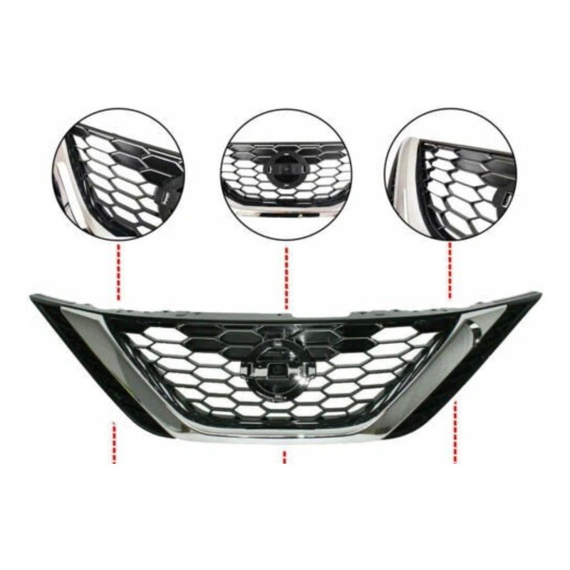 Rejilla superior cromada y negra para parachoques delantero de Nissan Sentra 2016-2018 Compatibilidad: Para Nissan Sentra 2016-2018 Descripción: 100% nuevo. Alta calidad. Haga que su vehículo luzca más moderno y único. Aporta un aspecto espectacular al vehículo. Reemplaza la rejilla descuidada. Un reemplazo perfecto para el mercado de accesorios. Se recomienda la instalación profesional. Fácil instalación, reemplazo directo. Características: Diseño ligero Superficie con tratamiento antirayaduras Color: Negro y cromado Material: Plástico ABS Ubicación en el vehículo: Delantero Número de pieza: 62310-3YU0A Contenido del paquete: 1 rejilla 2 soportes ¿TIENES ALGÚN PROBLEMA CON LA COMPRA? No inicies un reclamo, antes danos la oportunidad de solucionarlo. *SE RECOMIENDA CONFIRMAR EXISTENCIA ANTES DE COMPRAR EL ARTÍCULO, YA QUE SON ARTÍCULOS BAJO PEDIDO Y EL STOCK CAMBIA CONSTANTEMENTE *LOS PAQUETES TARDAN DENTRO DE 7-12 DÍAS EN ENVIARSE A SU DESTINO #Betuning #Expertosenloquehacemos IMPORTADORA DE AUTOPARTES TMX SA DE CV.
